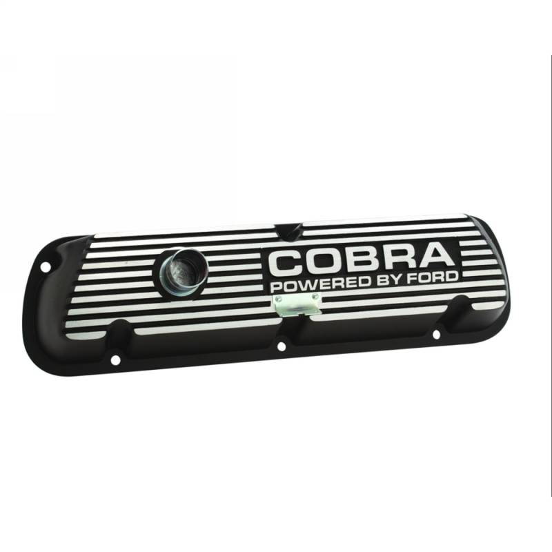 Black Satin Valve Covers What's a high performance Ford without a set of Ford Racing valve covers? Take your pick from die-cast aluminum covers with a smooth or finned design in either a polished or satin black finish. The valve covers are available in a variety of styles with an array of logos that are sure to add an individual touch to your Ford. Die Cast Aluminum With Baffle Black Satin Finish Cobra Powered By Ford Logo May Require Modification For Roller Rockers Incl. Oil Fill Cap/Grommets