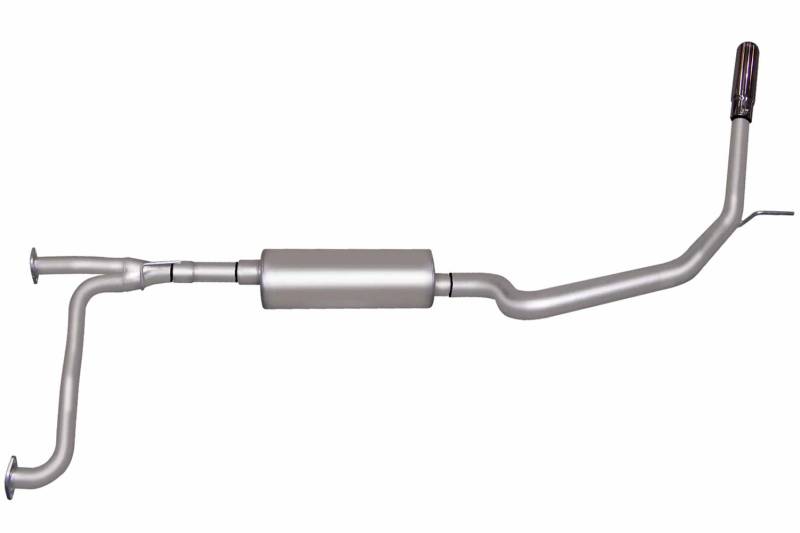 Single Exhaust System Gibson Single Side Exhaust is perfect for improved acceleration, maximum hill climbing, towing and passing power. This is our best performing Exhaust System. Exits behind the rear tire. Quieter in the cab than any other Performance Exhaust. Dyno test results show it makes maximum torque and horsepower at low-end (1800 to 3000 RPM). Horsepower gains average 10-15 and 15-20lb-ft of increase torque. Hassle free, bolt-on installation with professional looking results. No welding required. Backed by a Lifetime Limited Warranty. Aluminized Mandrel Bent Tubing Superflow™ Muffler Baffled/Chambered Muffler; No Internal Packing Minimal Interior Drone - Aggressive Sound Polished Stainless Steel Slash-Cut Tips