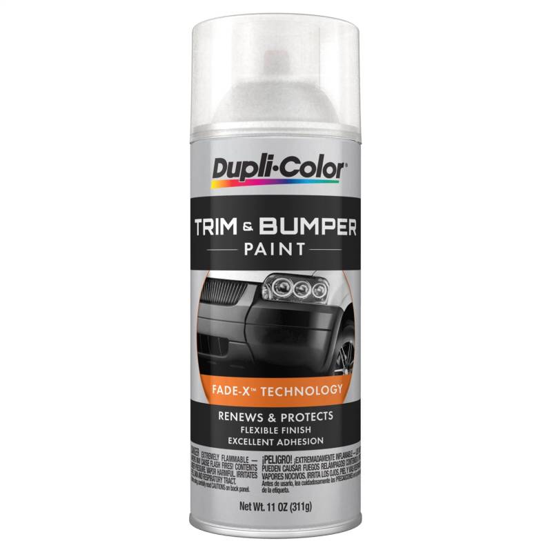 Dupli-Color(R) Trim & Bumper Paint renews and protects weathered or discolored trim, bumpers, molding, and rub strips. This tough protective coating offers a uniform, solid color with superior adhesion to plastic, metal, rubber & chrome.