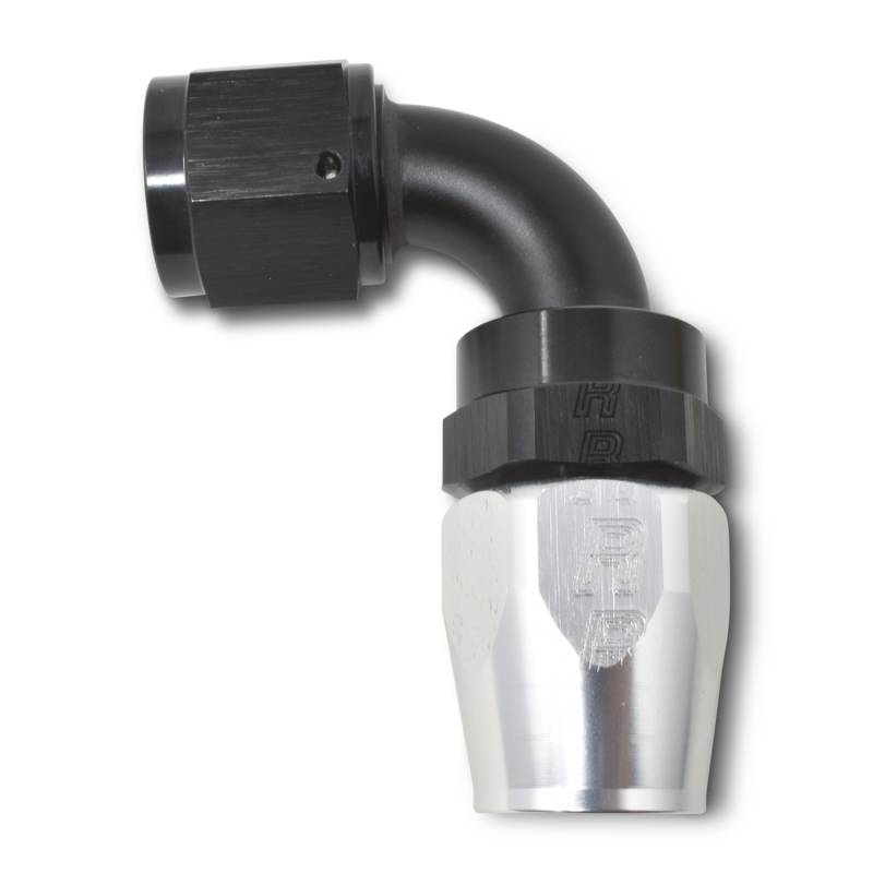 6AN ProClassic Swivel 90 Degree Hose End With Black/Silver Finish Russell Pro Classic Hose Ends are made from 6061-T6 aluminum and are completely reusable. They feature Russell's proven long taper design ensuring the ease of assembly. AN Standard 37 degree flare design. Russell Pro Classic Hose Ends work with all AN Male adapters. Use only with Russell Pro Classic hose for best results. 37 Deg. AN Flare 6061-T6 Aluminum Black & Natural Anodized Finish Completely Reusable W Russell Pro Classic Hose Interchangeable w/Many Manufacturers AN male adapters