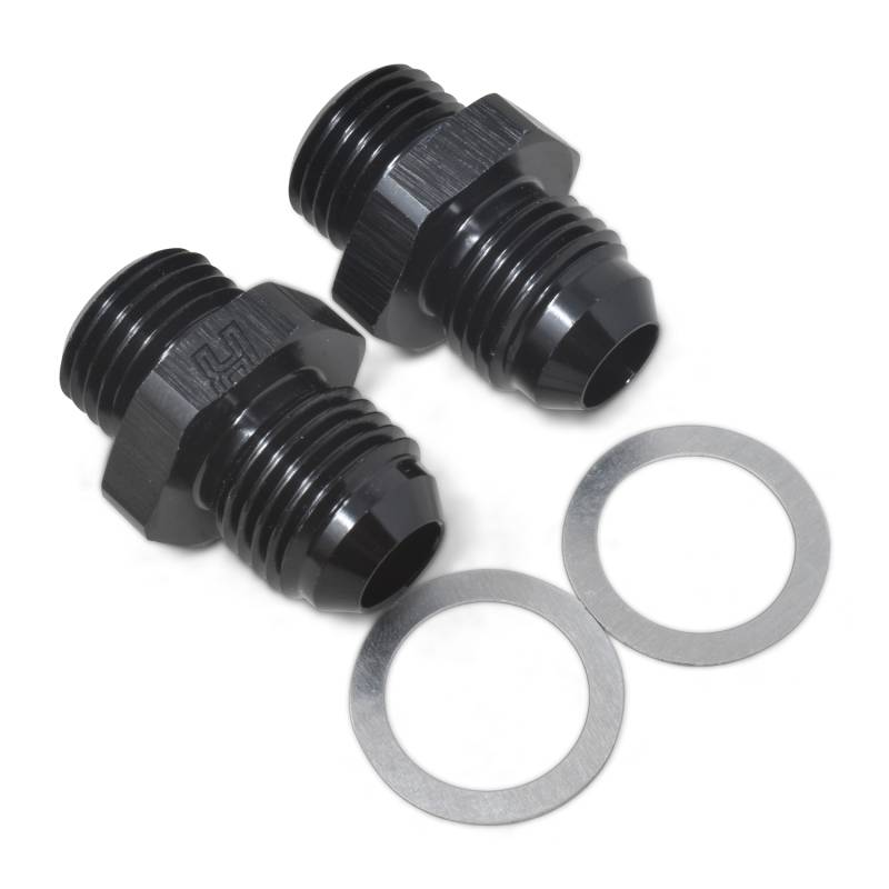6AN Holley Dual Feed 750 To Dominator 1350 Carb 7/8" -20 Fitting, Black - Pair Russell's wide variety of adapter fittings allow for the connection of AN hose ends and hardlines to almost any system. Adapters are offered in many configurations. 6061-T6 Aluminum Precision Machined