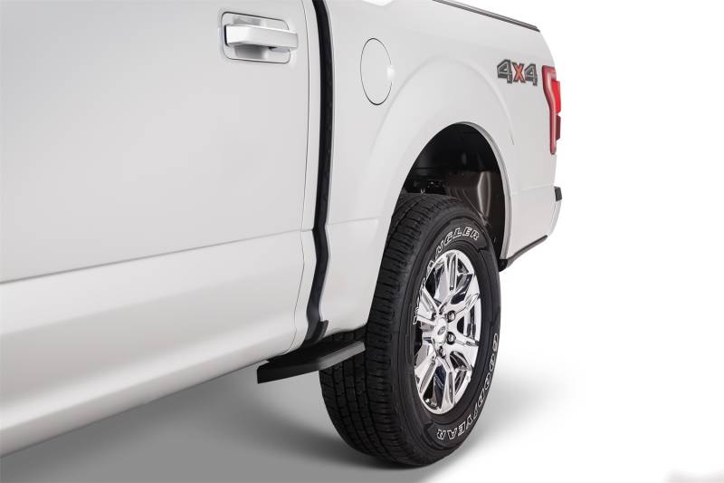 Side steps for hard-working trucks. The AMP Research Bedstep2 mounts just behind the cab, forward of the rear wheel, providing a faster, easier and safer route to access toolboxes, equipment and cargo in the bed. Easily installed, this frame-mounted, retractable truck step can be mounted on either side of the truck box, and it flips down or retracts with just the nudge of your foot.