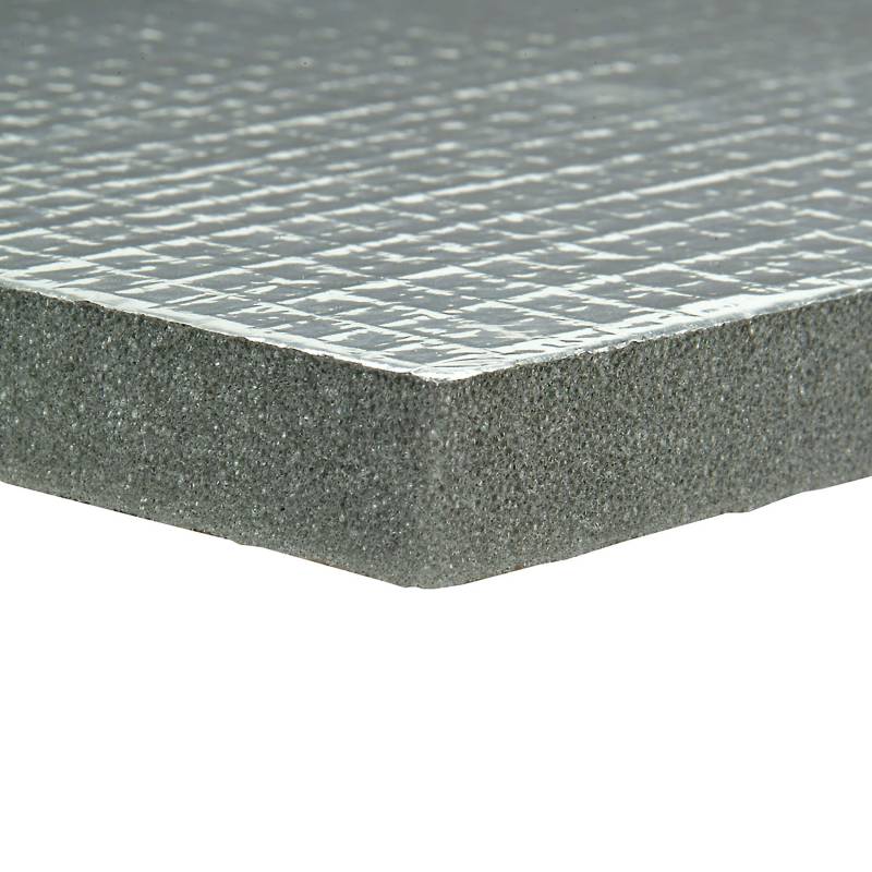 Under Hood Insulation 32in x 54in Boom Mats new Under Hood Thermal Acoustic Lining was designed primarily for automotive engine compartments as a way to greatly reduce heat and noise with a simple and easy peel and stick application. Extreme engine heat and noise often is a problem with todays modified vehicles packed with high performance components. Made of 3/4 in. thick high quality, marine grade acoustical foam with a fiberglass reinforced reflective aluminum skin while the 5 mil acrylic adhesive provides a permanent bond. Under Hood Thermal Acoustic Lining not only insulates the underside of the hood for sound deadening and thermal control it also protects the vehicles paint finish. Under Hood Thermal Acoustic Lining can also be used as noise control applications such as on generator boxes and many industrial uses including HVAC applications. Insulate From Heat While Reducing Noise And Vibration Peel And Stick Application Protects Paint Finishes Resists Oil/Water And Contaminants 3/4 in. Thick