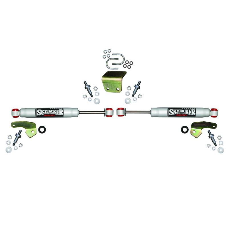 DUAL STAB KT SILVER Skyjacker(R) stabilizers dampen out the harshness of the highway, the shimmy from running the additional weight of larger tires and wheels and places control back into the drivers hands. Stabilizers also reduce the fatigue of the driver on a personal level by reducing the amount of physical strength it takes to guide those larger tires on and off the road. Changing the weak stock unit for a better performing replacement or adding dual steering stabilizers is an inexpensive and worthy investment. Is A Dampening Shock For Steering Stabilizer Dampens Harshness Of Highway Reduce Driver Fatigue Dampens Shimmy From Larger Tires Inexpensive And Worthy Investment