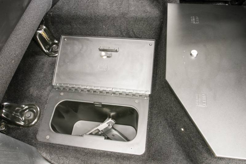 Locking Lid | In-floor | RAM Trucks | 2009-2026 | Crew Cab | Classic This heavy duty locking In-floor Storage Security Lid replaces the existing plastic cover from the factory. Constructed from 16 gauge and 1/8 inch thick welded steel. It creates secure storage in the hidden floor compartment which is ideal for securing valuable tools and gear. The unique design features our Pry-Guard locking system with 1/8 inch thick steel components and a welded continuous steel hinge. The lid also provides a sturdier and more durable deck surface for items placed on top. Easy to install using standard hand tools in just a few minutes.