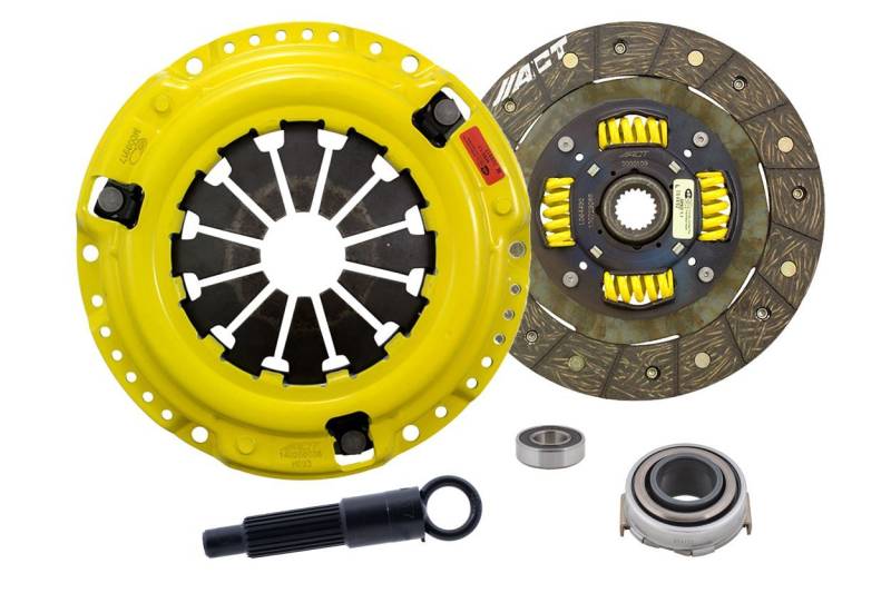 ACT Heavy Duty Performance Street Sprung Clutch Kit HC5-HDSS kit features ACT's most popular Heavy Duty pressure plate and most popular street disc. ACT Heavy Duty pressure plates use exclusive diaphragm design to increase clamp load, reduce deflection and maximize clutch life. All diaphragms endure a four-stage, heat-treating process for unparalleled performance. ACT pressure plates have precision cover stampings to provide rigidity and consistency. ACT's Performance Street discs feature premium organic materials with high copper content for better heat transfer and steel-backed lining for greater burst strength and durability. These discs have reduced marcel for faster shift action to complement ACT pressure plates, with increased strength and reliability. "Excellence in Performance", backed by the best one-year warranty in the industry!