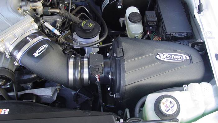 Volant air intake systems utilize a high-velocity venturi filter adapter which provides a smooth transition through the MAF sensor into the intake tube for a much needed airflow improvement over the factory rubber tubing and resonator box.