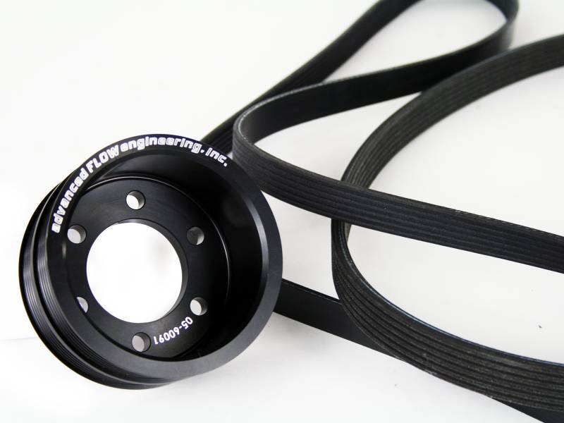 aFe Powers new power pulley brings performance engineering to your BMW. This power pulley is a complete bolt-on kit, including the pulley, bolts, and belts. aFes power pulleys are CNC machined out of billet aluminum and black anodized for that aggressive look under the hood. This power pulley does not modify factory harmonics or dampening. When it comes to engineering for power, performance, protection and value, aFe Power is the only choice.