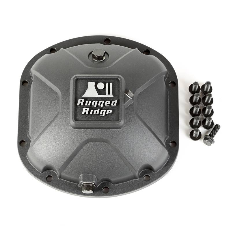 Boulder Aluminum Differential Cover, Black, for Dana 30 The new matte black Rugged Ridge Boulder Aluminum Differential Covers are constructed from A356-T6 cast aluminum for strong impact resistance and feature a precision machined sealing surface, allowing gaskets or RTV sealant to be used for a leak-free seal. Each cover is designed to help protect internal components from damage caused by contact with rocks and other terrain off-road as well as aid in dissipating heat from differentials. These covers also come complete with a magnetic drain plug for protection against costly damage from metal particles that can accumulate in gear oil and include a specially designed dipstick bolt to help Jeep owners avoid under or overfilling their differentials. Patent No. D798,906