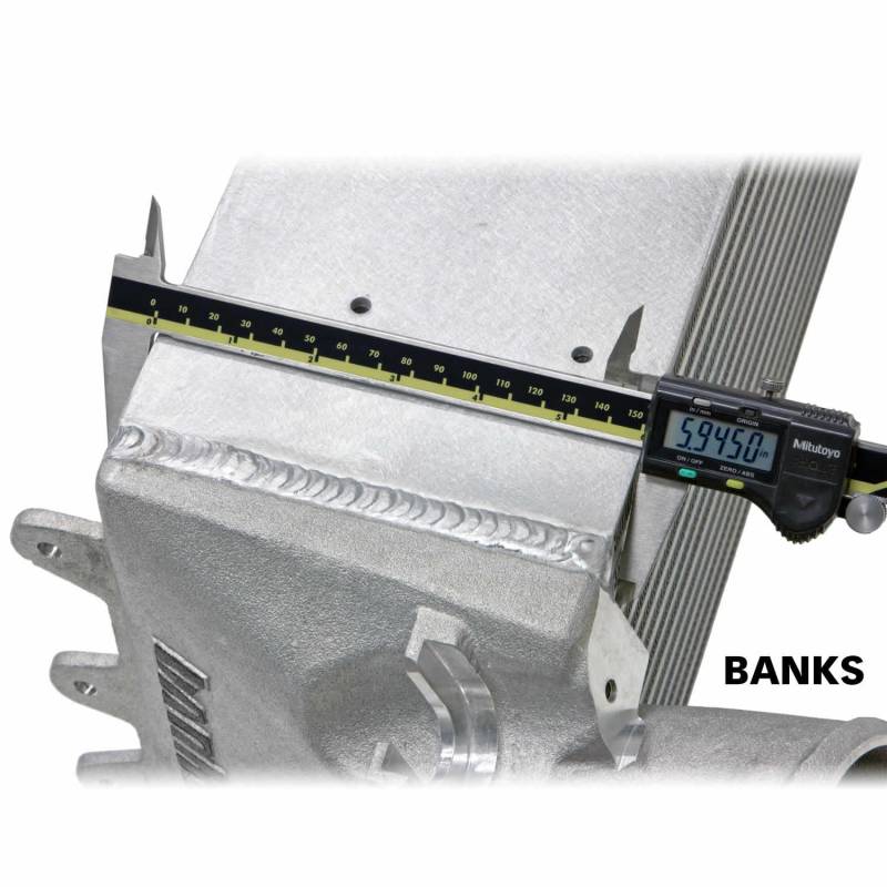 Intercooler Upgrade Allows your Cummins engine to make consistent power under extreme conditions. Prevents engine derate. Cooler EGTs, improved fuel economy, and better constant-duty power. Flows 48% better than stock. Adds a calculated +27 hp and +51 lb-ft. Includes massive high-flow boost tube upgrade. Superior to Stock: Everything about Banks Intercooler Intercooler System is designed bigger and better. This upgrade kit includes a set of high-flow boost tubes and a Banks designed intercooler solution. The Banks Boost Tubes feature over sized mandrel-bent pipes matched to the increased performance design of the new intercooler. The Banks designed intercooler has a thicker core to improve cooling area and volume, while its large high-efficiency all-aluminum end tanks and wide-open inlet / outlets maintain peek performance. The Banks Intercooler dramatically increases the engines cooling capacity and power potential by balancing a richer fuel mixture with cooler, denser, improved airflow. Result: You get higher continuous power and more power at any exhaust gas temp (EGT), with better fuel economy, and lower EGTs. That's a truckload of benefits! It doesn't get any cooler than Intercooler! Mounting hardware included. Banks is Breaking B.A.D.!