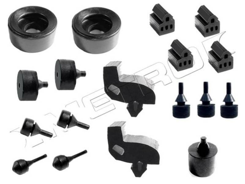 Founded in 1918, Metro Moulded Parts, Inc. is the leading USA manufacturer of top quality molded detail rubber parts and sponge rubber weatherstripping for antique, classic, restoration cars and trucks, as well as late model vehicles. Metro's detailed rubber parts are manufactured to meet or exceed the specifications of the original part. They are the finest reproductions available anywhere. Snap-In-Bumper Kit. 18-Piece Set Includes: (4)DB 52, (2)HA 8-A, (2)HF 60, (2)SB 122, (2)SB 124, (1)SB 125, (2)SB 78, (3)SB 86