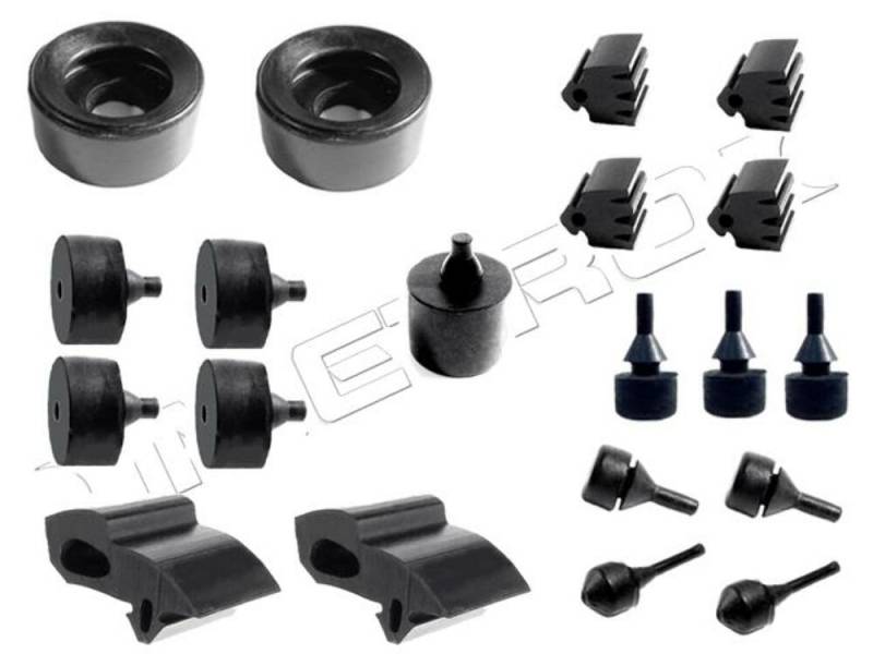 Founded in 1918, Metro Moulded Parts, Inc. is the leading USA manufacturer of top quality molded detail rubber parts and sponge rubber weatherstripping for antique, classic, restoration cars and trucks, as well as late model vehicles. Metro's detailed rubber parts are manufactured to meet or exceed the specifications of the original part. They are the finest reproductions available anywhere. Snap-In-Bumper Kit. 20-Piece Set Includes: (4)DB 53, (2)HA 8-A, (2)HF 61, (2)SB 122, (4)SB 124, (1)SB 125, (2)SB 78, (3)SB 86