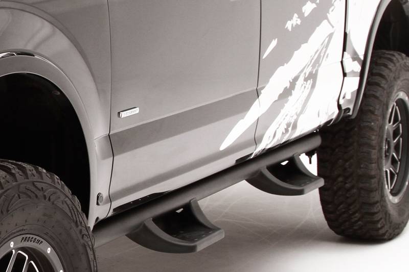Exclusively for the Ford Ranger, The 4 Door Side Steps focuses on aggressive styling, ease of installation and safety. Key features include fully formed stamped steps, 10 in. large full width stomp pad, embossed Fab Fours logo and a patented design