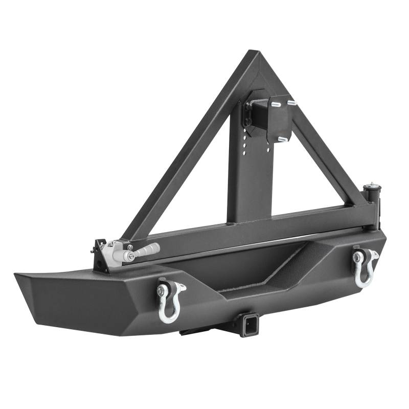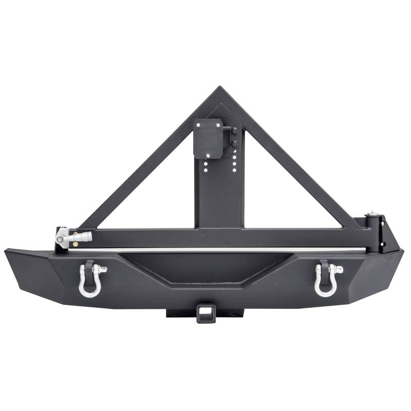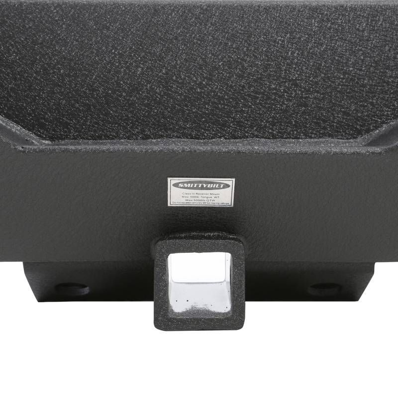The Smittybilt XRC Gen 1 Rear Bumper for the 2007-2018 Jeep Wrangler JK/JKU offers superior strength and durability for off-road adventures. Manufactured from 3/16" cold rolled steel, this bumper features a Class III hitch rated up to 5,000 lbs for towing, and is compatible with both OE and HD Pivot tire carriers. Finished in a textured black powder coat, it's designed to handle the toughest terrains while providing lasting protection, backed by a limited lifetime structural warranty and a 5-year finish warranty. This kit includes the carrier only. Bumper sold separately (part number 76856-01)