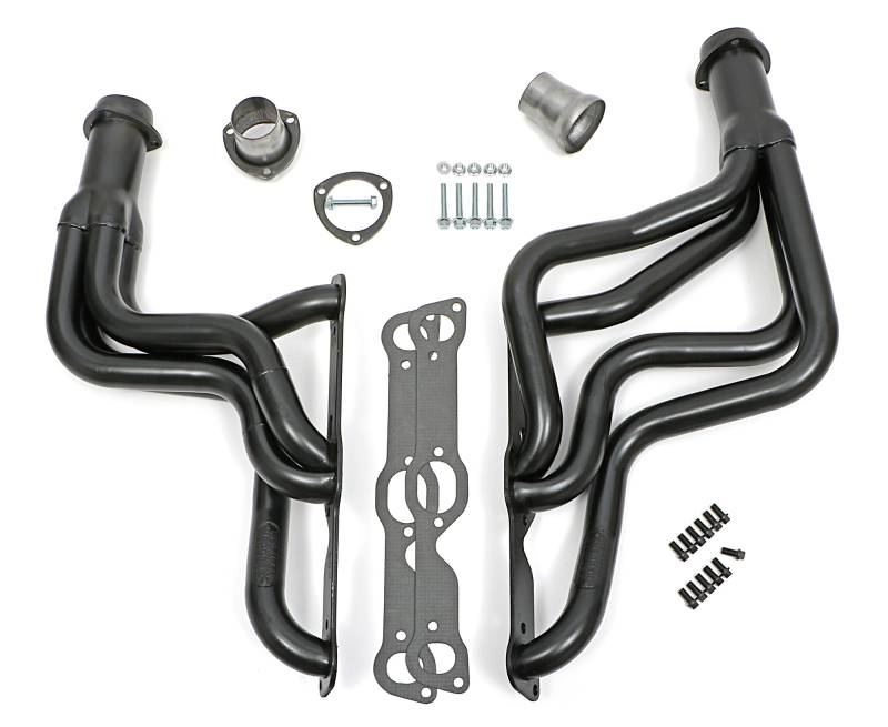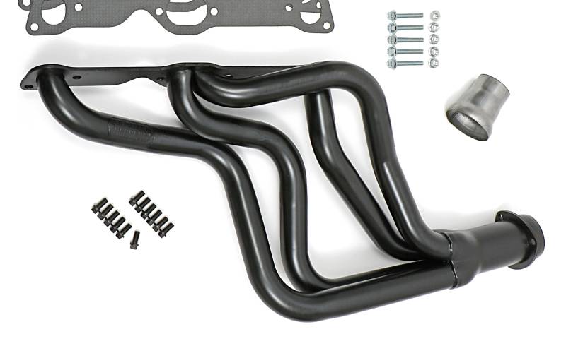 Uncoated Long-Tube Headers For 1964-72 GTO, LeMans w/ Pontiac V8 Handcrafted, Mild Steel Construction. Long Tube Header Design Provides Excellent Top-End Horsepower and Torque. Ball & Socket Collector Design requires No Gasket, and Allows For More Exhaust System Misalignment than Old School, Gasket-Style Header Collectors Includes All The Necessary Mounting Hardware, Gaskets and Reducers (exhaust adapters) Limted Lifetime Warranty On Construction, Five Year Warranty on Factory-Applied Header Coating!