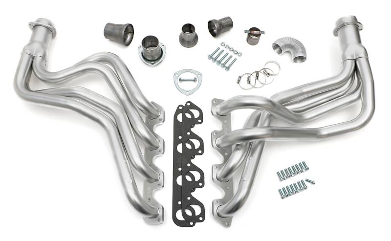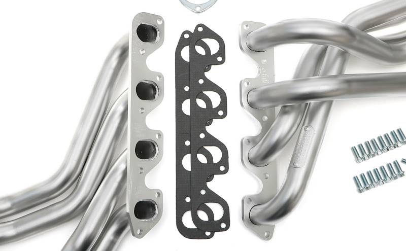 HD Silver EO Headers For 77-79 Ford 4WD F150-F350 Trucks & Broncos with 351-400M Heavy-Duty ELITE Header Construction With Thick 3/8 in. Flanges and 14g Primary Tubes To Hold Up To The Added Tortures Of High-Performance and Truck Engines. Thermal Coating Keeps More Heat In The Headers To Keep Underhood Temps Down and Protect Against Corrosion. Ball & Socket Collector Design requires No Gasket, and Allows For More Exhaust System Misalignment than Old School, Gasket-Style Header Collectors Includes All The Necessary Mounting Hardware, Gaskets and Reducers (exhaust adapters) Limted Lifetime Warranty On Construction, Five Year Warranty on Factory-Applied Header Coating!
