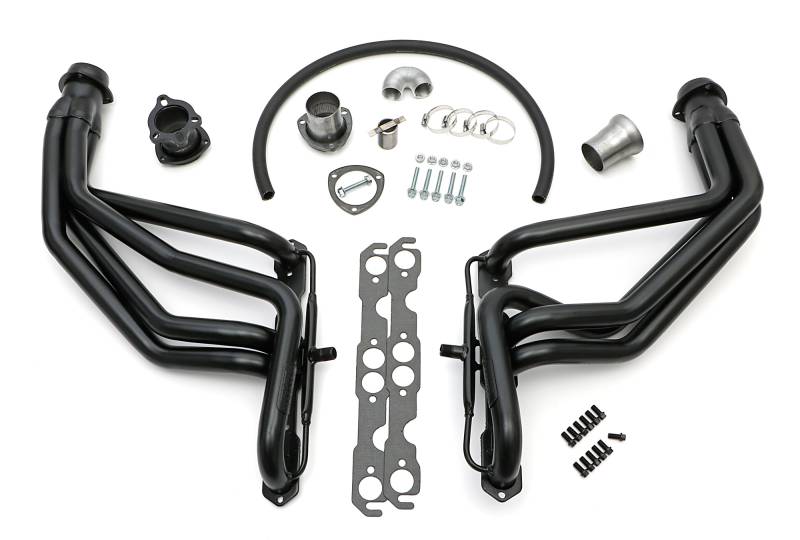 Handcrafted, Mild Steel Construction. Long Tube Header Design Provides Excellent Top-End Horsepower and Torque. Ball & Socket Collector Design requires No Gasket, and Allows For More Exhaust System Misalignment than Old School, Gasket-Style Header Collectors Includes All The Necessary Mounting Hardware, Gaskets and Reducers (exhaust adapters) Limted Lifetime Warranty On Construction, Five Year Warranty on Factory-Applied Header Coating!Details