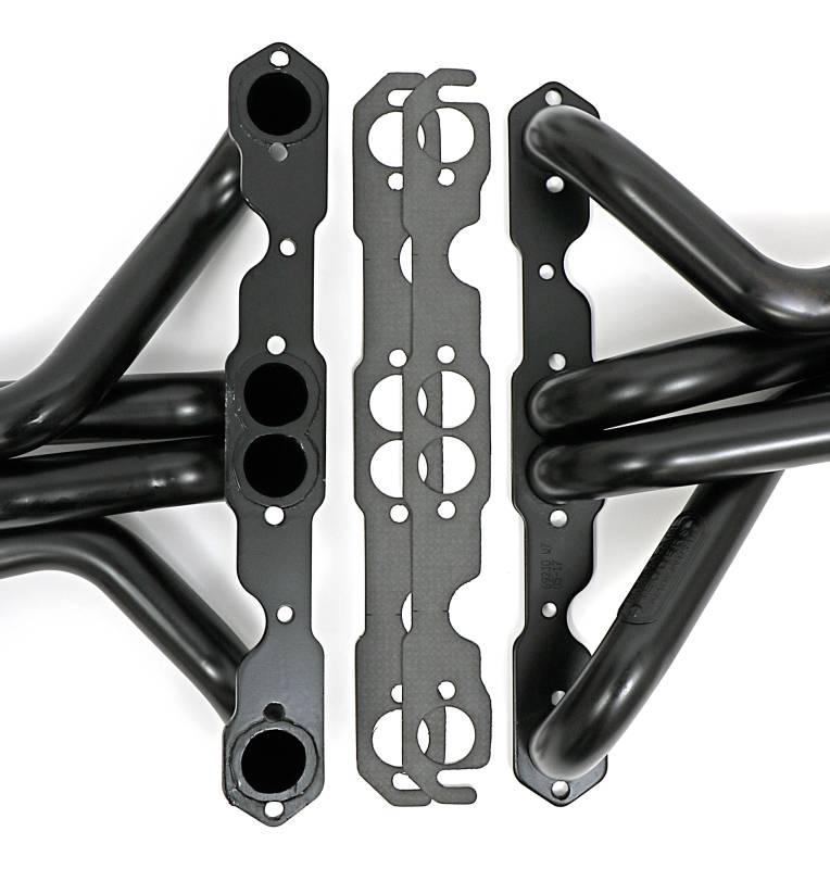 Handcrafted, Mild Steel Construction. Long Tube Header Design Provides Excellent Top-End Horsepower and Torque. Ball & Socket Collector Design requires No Gasket, and Allows For More Exhaust System Misalignment than Old School, Gasket-Style Header Collectors Includes All The Necessary Mounting Hardware, Gaskets and Reducers (exhaust adapters) Limted Lifetime Warranty On Construction, Five Year Warranty on Factory-Applied Header Coating!Details