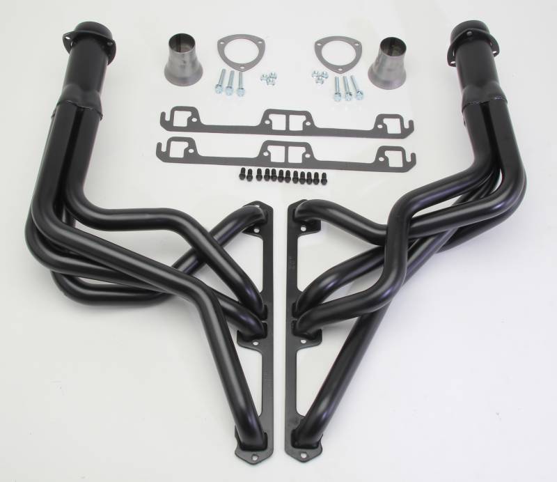 Uncoated Long-Tube Headers for 68-74 AMC Javelin/AMX, Gremlin & others w/290-401 Handcrafted, Mild Steel Construction. Long Tube Header Design Provides Excellent Top-End Horsepower and Torque. Ball & Socket Collector Design requires No Gasket, and Allows For More Exhaust System Misalignment than Old School, Gasket-Style Header Collectors Includes All The Necessary Mounting Hardware, Gaskets and Reducers (exhaust adapters) Limted Lifetime Warranty On Construction, Five Year Warranty on Factory-Applied Header Coating!