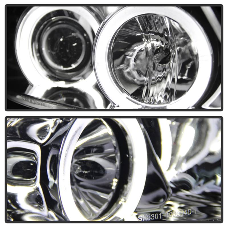 Projector Headlights - LED Halo - Amber Reflector - Eyebrow Bulb - Smoke These projector headlights are designed to improve looks and visibility for your vehicle. They are made by OEM approved and ISO certified manufacturers. They are made with OEM standard quality and are designed for stock lights direct replacement. Features halogen low and high beam