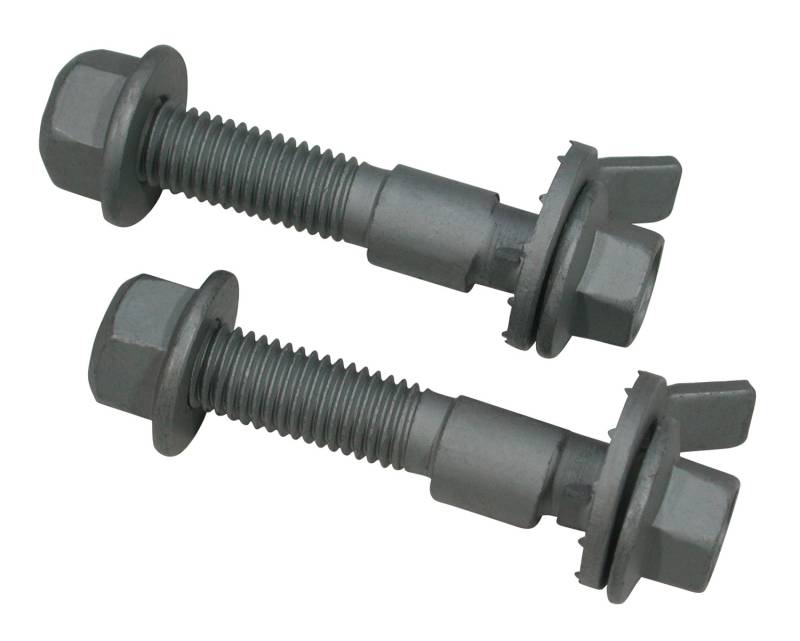 By installing these cam bolts in the LOWER BOLT POSITION on the 2-bolt front strut assembly of this popular platform, you can dial in front camber adjustments. US Patent Nos. 8,544,861 8,469,375 D783,393 Additional Patents Pending China Patent No. ZL 201630012294.X