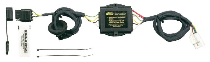 Dont splice onto your vehicles factory wiring harness. Simply plug in this Hopkins vehicle wiring kit featuring exact OEM matching connectors for a perfect weather-tight fit. This kit provides a power converter that reduces the load on the vehicles lights and provides brighter lights on the trailer. Required accessories are included to get you towing faster.