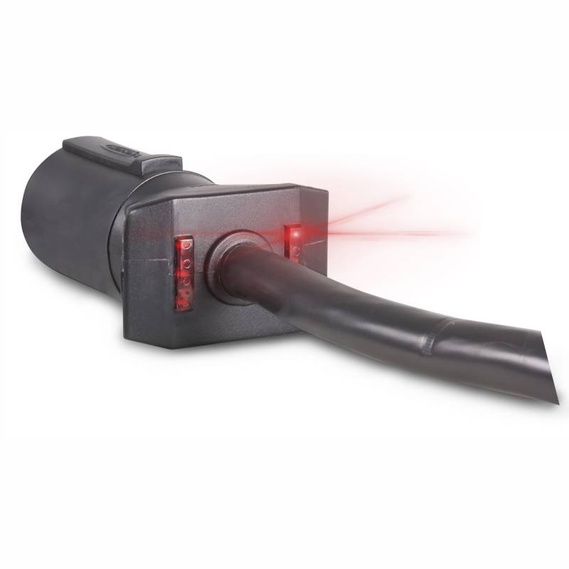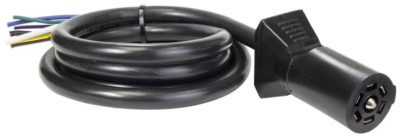 The LED Test 7 blade molded cable is prewired and provides protection to the wires with the jacketed wire sleeving. The LED lights confirm electrical continuity exists for each tow function. 7 Blade connectors are typically used with large trailers and are the most common vehicle side connectors.