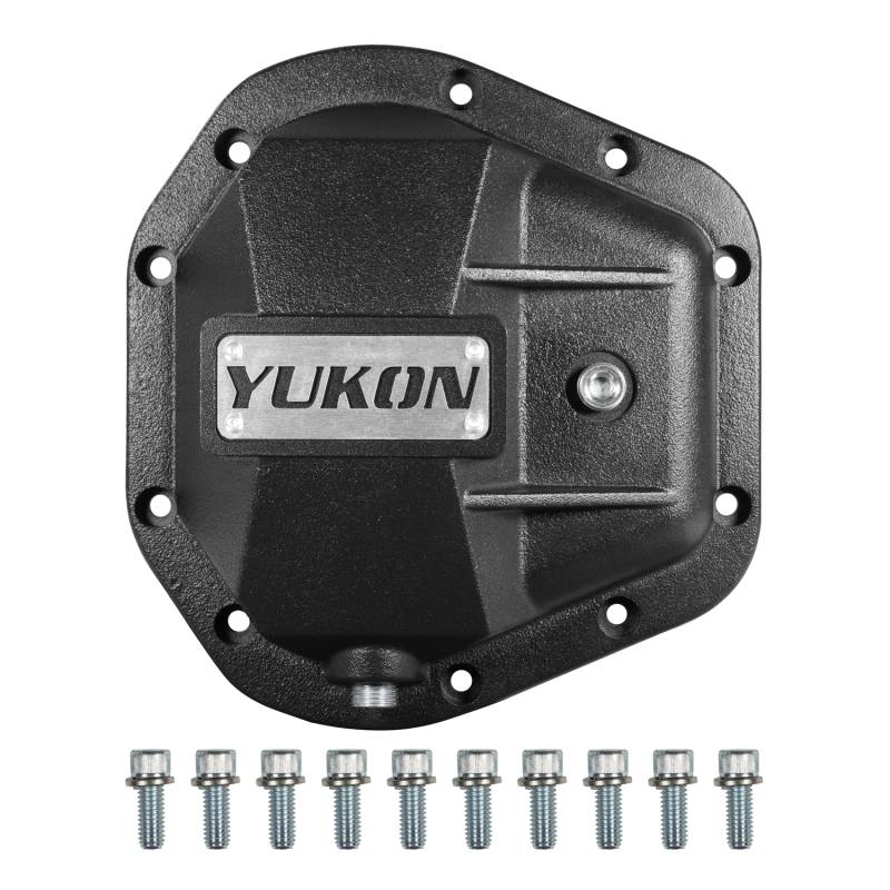 Yukon Hardcore Diff Cover for Dana 50, Dana 60 & Dana 70 Yukon Hardcore Diff Covers are constructed from thick-walled, high-strength nodular steel to protect lockers, gears and axles from the most extreme hits in off road driving. They also increase the structural rigidity of the differential, reducing deflection under high-torque situations that can put severe loads on vital internal parts. Yukon Hardcore Diff Covers feature a durable powder coat finish and high strength steel fasteners for easy bolt-on installation. It’s no secret that the underside of your rig can take a beating. Remember your diff! It’s the lowest hanging fruit and very susceptible to damage… crack or break it and you’re done for the day. Upgrade to a Yukon Hardcore Diff Cover and enjoy more peace of mind on the trail. Thick-walled nodular iron construction promotes housing rigidity Contoured inner surfaces circulate oil more rapidly for faster cooling Black powder coat finish adds durability and style Contrasting stainless-steel accent plate and cover bolts Fits standard and reverse rotation diffs