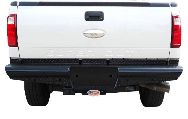 HD Rear Bumper Replacements Highlights include diamond plate and schedule 40 pipe used for strength, built in sensor cutouts (If applicable), 1 year warranty, and both E-coated and powder coated to ensure quality performance for years to come. Semi-gloss finish