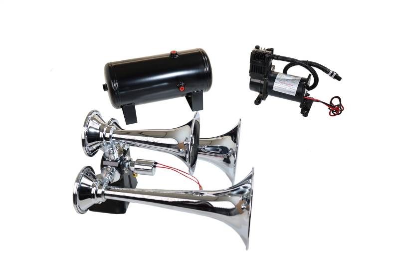 Pro Blaster Triple Horn Kit; Chrome; Includes Horns PN[500]/ 150 PSI Air Compressor PN[6275RC]/ 1.5 Gallon Air Tank PN[6275RT];