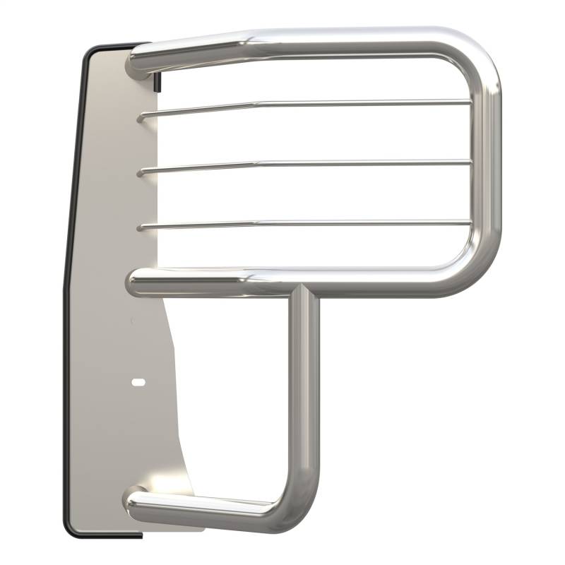 Prowler Max Polished Stainless Grille Guard, Select GMC Sierra 2500, 3500 HD Basic. Standard. Stock. Some words were never intended to describe your truck, and it takes a certain type of hardworking truck accessory to meet your expectations. The LUVERNE Prowler Max grille guard equips your truck to tackle the toughest of jobs with its uncommon construction, comprehensive protection and arsenal of extra features. It begins with a bold, punched steel screen center section. This heavy-gauge mesh not only adds style to the Prowler Max but also increases protection for your grille, shielding it from rocks, debris and other threats. The center section features our signature logo reveal with contoured horizontal tubes to add even more protection and increase structural stability. Below the center section is a built-in 4" wide step with non-skid, diamond treads. The step blends perfectly with the grille guard and provides easier access when working under the hood, particularly on large, full-size pickup trucks. The Prowler Max grille guard also distinguishes itself with its vehicle-specific wraparound ring assembly. The double-stacked side brush guards uniquely contour to the front end of each truck application and feature 3/8" wires for increased headlight protection. This particular custom truck grille guard fits specific years of the GMC Sierra 2500 HD and 3500 HD (see fitment info to verify). To give it the muscle to stand behind its attitude, we construct the Prowler Max from one-piece, 2" diameter tubular steel. Its heavy-duty uprights bolt directly to the frame of the truck, using high-strength steel brackets and a no-drill installation (NOTE: Brackets for attaching this grille guard are included but shipped separately). To finish things off, the Prowler Max truck grille guard is available in two finish options. The E-coat and black powder coat finish offers maximum durability, while the high-polish stainless steel provides a bright, no-rust shine.