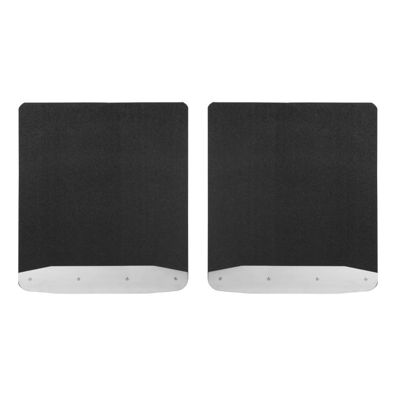 Rear Dually 20" x 23" Rubber Mud Guards, Select Ford F-350, F-450 (2 Flaps) Whether you're on the job or off-roading through the wilderness, it doesn't take long for rocks and other debris to wreak havoc on the body of your truck. LUVERNE Textured Rubber Mud Guards are the perfect solution for maintaining that pristine, professional look. For the front or rear of the truck, these custom mud flaps add style and body protection. They are constructed from heavy-duty black rubber that stands up to road debris and sheds water with ease. They feature 18-gauge stainless steel plates to help protect the bottom edge and extend the life of the mud flaps. With their 3/8" thick, recycled rubber construction, Textured Rubber Mud Guards easily deflect everything from mud to gravel, protecting the body of your truck from scratches, chips and scuffs. They are also made to add a stylish accent to your truck, featuring stainless steel plates along the bottom edge of each flap. The plates are made from 18-gauge stainless steel to provide a heavy-duty, rust-resistant shield, and they feature a bright, high-polish finish for a long-lasting shine. The textured finish of the rubber mud flaps is also designed to easily hide minor scuffs and scratches and maintain a clean appearance. For an easy installation and a custom fit, these truck mud flaps are made vehicle-specific. This particular set fits specific years of the Ford F350 Super Duty and F450 Super Duty (see application info to verify fitment). They install with corrosion-resistant fasteners and high-strength steel mounting brackets with a galvanized finish for long-lasting durability. Universal mud flaps are also available.