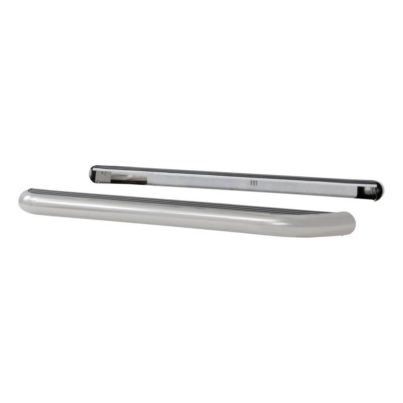 MegaStep 6-1/2" x 60" Aluminum Running Boards, Select Ford F-Series LUVERNE MegaStep 6-1/2" running boards are the ultimate combination of style and functionality. They have 5" wide treads that extend the full length of the side steps, and they feature a strong, lightweight aluminum core with a stainless steel trim for a bright, clean accent. MegaStep running boards mount easily with vehicle-specific brackets, pre-installed fasteners and an adjustable design to perfectly fit your unique vehicle. LUVERNE MegaSteps are designed to offer the best features from a variety of side accessory options. Their non-skid rubber treads cover the entire topside of the boards, giving them the functionality and convenience of a running board. However, unlike most running boards, MegaSteps are styled after the popular look of many nerf bars. This makes them a unique and useful extension of your vehicle. To give MegaStep running boards an even greater advantage over other side steps, they are built to outlast the elements. We construct them with a strong, lightweight aluminum base that naturally resists rust, and we finish them with a high-polish stainless steel trim. The trim is a heavy-duty, 18-gauge stainless steel to make it more than just a fancy accent, and its highly polished finish gives the running boards a bright, long-lasting shine. Installation of LUVERNE MegaStep running boards is easy and customizable. The boards come with pre-installed fasteners and attach using high-strength, vehicle-specific mounting brackets. They are also uniquely designed to be adjustable inward, outward, forward or backward, giving you complete freedom to position the steps wherever you want them. This particular set of running boards is designed to fit'specific years of the Ford F150, F250 Super Duty, F350 Super Duty, F450 Super Duty and F550 Super Duty (see application info to verify fitment). Brackets for these running boards are included but ship separately. Nerf bar styling with the convenience of a full-length running board step Extruded aluminum core to be strong, lightweight and rust-free High-polish, 18-gauge stainless steel trim for a bright, clean finish Boards easily adjust in, out, forward or backward to suit personal preference 6-1/2" x 3" boards with a 5" non-skid rubber treads for a safe, comfortable step