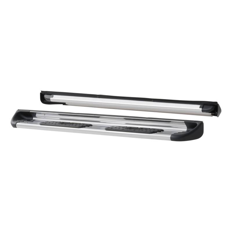 Polished Stainless Steel Side Entry Steps, Select Ford F-Series Extended Cab For us, classic doesn't mean outdated. It means tried and true. And when you combine the uncompromising quality of stainless steel with a tried-and-true design, you get side steps that will prove themselves season after season. LUVERNE Side Entry Steps feature a classic, contoured design that mounts flush to your vehicle's rocker panels and provides 5-1/2" of comfortable, non-skid stepping width. Featuring the vehicle-specific functionality of nerf bars and the classic styling of running boards, Stainless Steel Side Entry Steps are the best of both worlds. The wide step pads are made with tough black polypropylene to easily resist wear, and they feature a comfortable, non-skid surface to provide safe entry and exit. The durable plastic end caps add further style with their contoured shape and bold look. The end caps also protect the steps from rocks, road debris and other threats. To truly give LUVERNE Side Entry Steps what it takes to endure the elements, we construct them from stainless steel. Stainless steel construction eliminates the threats of rust, moisture and road salt and provides these side steps with a top-quality finish. They are available in high-polish stainless steel to give your truck a bright, clean accent or a durable black powder coat finish for maximum corrosion resistance. LUVERNE Side Entry Steps are made for a custom-fit installation, using vehicle-specific mounting brackets. This set of custom side steps fits certain years of the Ford F150, F250 Super Duty, F350 Super Duty, F450 Super Duty and F550 Super Duty Super cab (see application info to verify fitment). The brackets feature high-strength steel construction and have a durable powder coat finish (boards and brackets included but shipped separately).