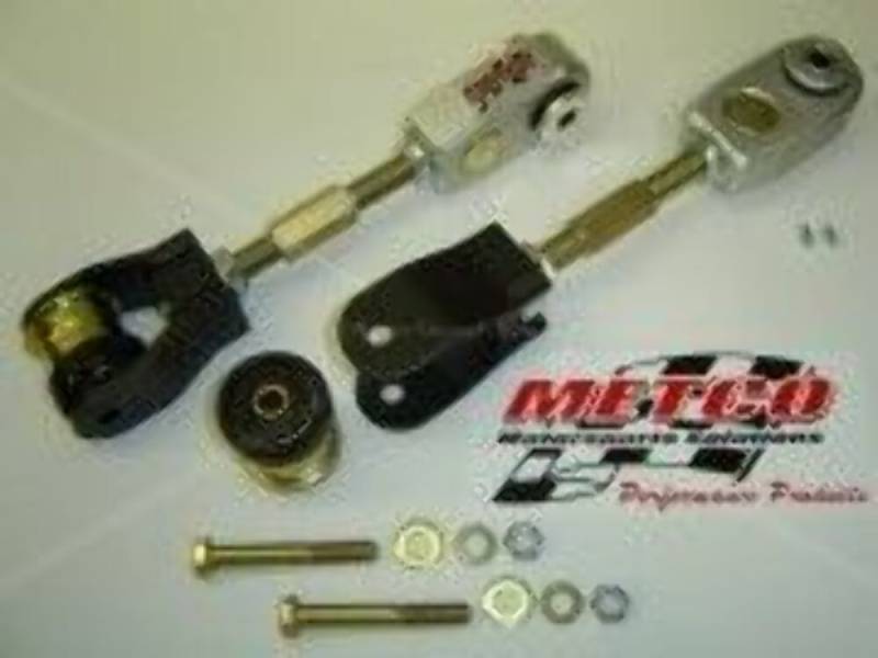The Metco Motorsports upper control arm is comprised of a precision-machined aluminum block housing a threaded steel pinion, a heavy-duty zinc-plated adjuster, and a precision-welded and powdercoated clevis. The combination of these premium components results in a control arm that can be installed as a direct replacement for the factory control arms, but offers the benefits of in-car adjustability, the firm response of polyurethane bushings, and an independently-verified 400% increase in strength.