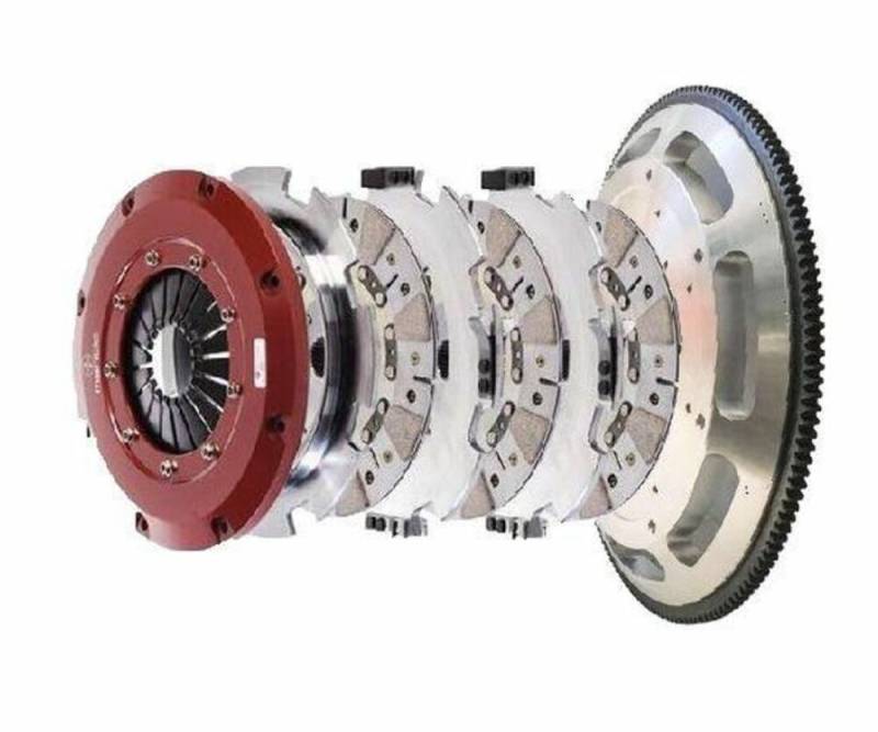 This kit includes Sprung Center, cushioned triple discs, using our premium Ceremetalic Friction material. This equates to more torque capacity and heat resistance while retaining excellent drivability. The Mantic USA 9000 series clutches are Triple disc, 9” (225mm) diameter which greatly reduces the MOI (Moment of Inertia). This allows more power to be put to the ground as well as quicker more precise shifts when compared to the heavier OE flywheels. The clutch is modular in construction for ease of service and is completely rebuildable. The cover and components are machined from billet stock adding strength and durability. Pedal effort remains relatively low, approximately 12-15% increase over the OE clutch pedal feel. These kits offer up to 1515 ft-lbs of torque capacity at the Crank, roughly 1250-1285 ft-lbs at the wheels.