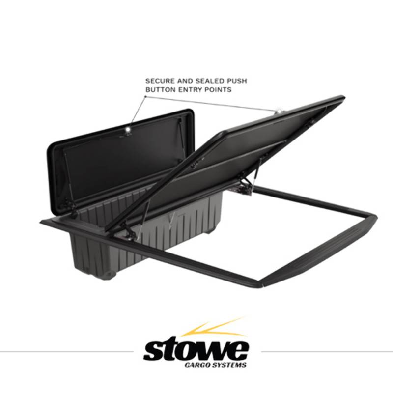 With a clamp-on design, the Stowe Cargo Management system is a no drill installation. The cover utilizes a durable six bar hinge system to make opening and closing the cover a breeze. The storage compartment at the front of the bed can support up to 400 lbs. Each panel has a push button lock for ease of access.