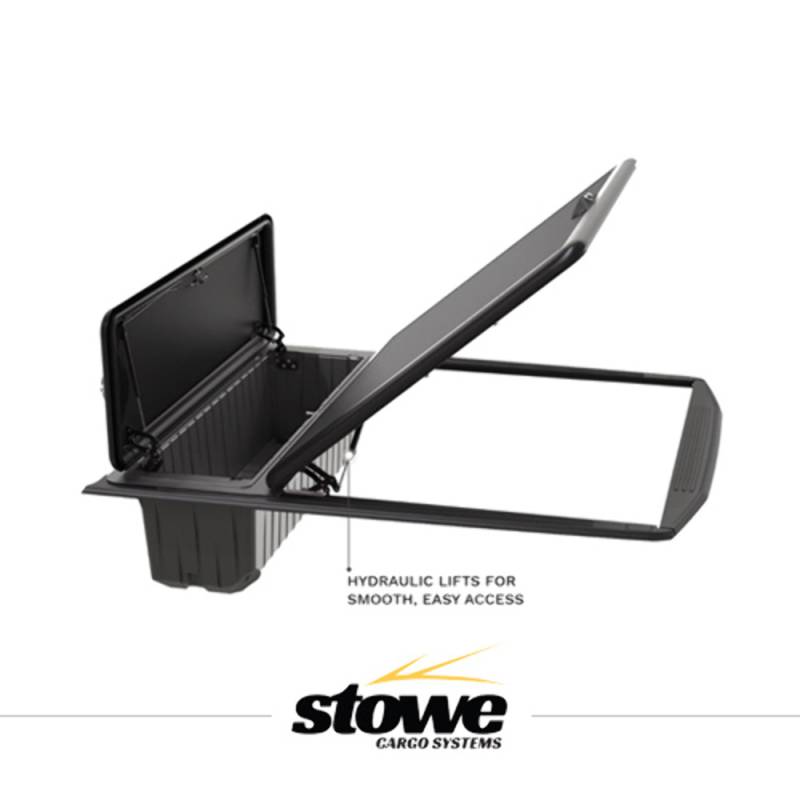 With a clamp-on design, the Stowe Cargo Management system is a no drill installation. The cover utilizes a durable six bar hinge system to make opening and closing the cover a breeze. The storage compartment at the front of the bed can support up to 400 lbs. Each panel has a push button lock for ease of access.