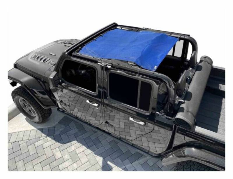 The Steinjager Teddy Top Solar Screen Cover easily installs in minutes with the use of the supplied bungee balls. There are cut-outs in the top to allow you to leave this cover on even when you have your factory top installed. The front section will need to be folded back when the Freedom Panels are installed. Covers front and rear seats.