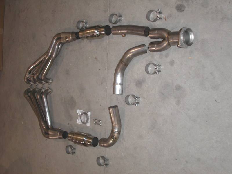 1999-02 Chevy, GMC 4.8L, 5.3L (2WD only) Truck headers. Made from 304 stainless steel, for maximum corrosion resistance. All tubes are CNC mandrel bent for optimal flow. 3/8" CNC laser cut flanges. These headers come with air tube fitting on primary and 1-3/4" primaries that flow into a 2-1/2" slip-fit collectors with O2 bungs welded into the collector that flow into 2-1/2" High-flow Converters into leads then to y-pipe with donut gasket included that connects to Factory connection point with flange. Kit includes High temp RTV silicone, 8mm Header Bolt Kit, All the accuseal clamps needed also the bolt kit to connect the 2 flanges for factory connection. Mill finish, All TIG welded for strength and durability. These kits come with a lifetime warranty and proudly made in the USA.