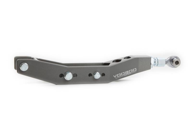 VooDoo13’s 2012+ FRS and BRZ Rear Lower Control Arms are designed, engineered and tested on race tracks across the globe using feedback of top tier drivers and technical directors. Precision CNC machined from high strength aluminum and coated in MIL-A-8625 Type III Hard Anodize, heat treated Chromoly Steel rod ends and Grade 8 hardware is used to ensure they will withstand abuse from street cars and track cars alike. These control arms offer a considerable increase in strength and rigidity over the OEM stamped steel arms that are prone to flex under stress due to their thin wall construction. Three shock angle mounting and three sway bar mounting positions are available which provide you with the ultimate in suspension tuning. The mounting location to the hub is designed to allow for 18mm of drop which will offer more suspension travel. Camber can also be adjusted which allows the user to reduce tire wear and improve handling and stability.