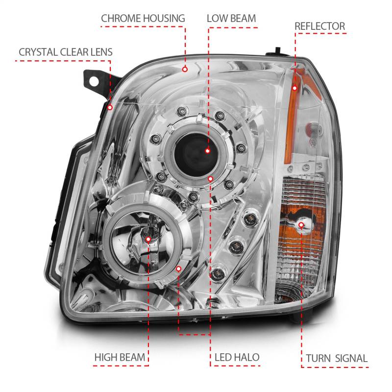 Anzo USA 111147 Chrome Projector Headlight Set w/CCFL Halo GMC Yukon/XL