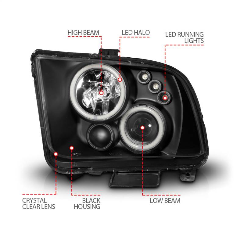 Anzo USA Projector Headlight Set w/CCFL Halo Black Ford Mustang 121166