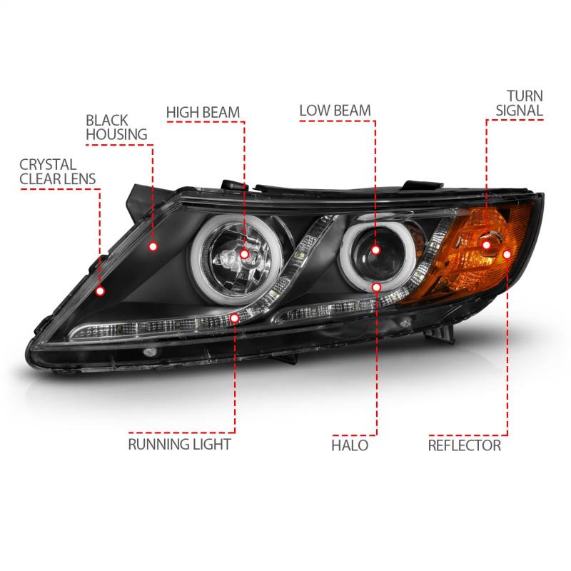 Anzo USA 121460 Projector Headlight Set w/CCFL Halo Black for 11-15 Kia Optima