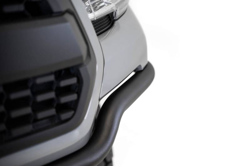 ADD PRO Bolt-On Front Bumper The ADD PRO Bolt-on bumper stays flush with the front your Toyota Tacoma. The PRO Bolt-on truly contours the body lines of the Tacoma without the need for a plastic valence. Built with .120" wall steel tubing for strength and durability and an aluminum skid plate for protection. Mounting options for lights underneath the main tube to keep them tucked away allow for up to 6 cubes or a 20" radius LED bar.
