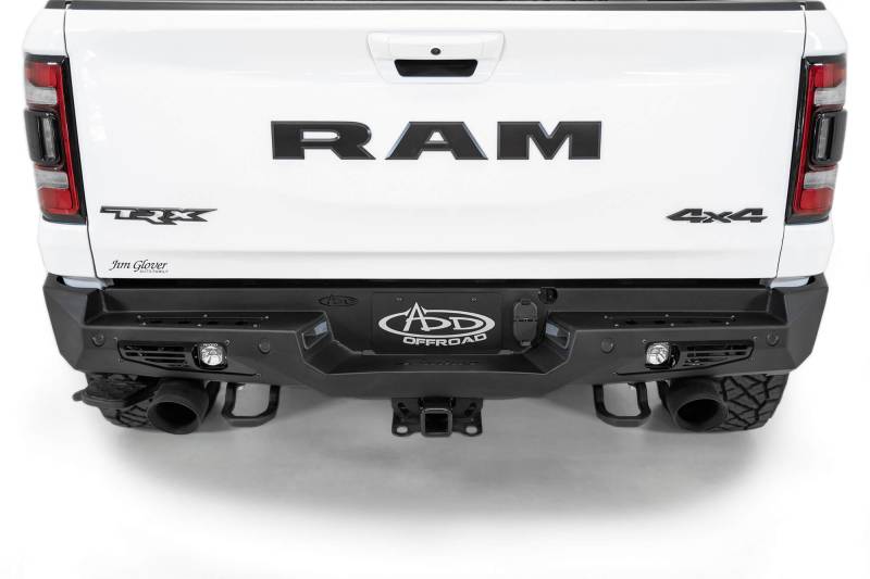 Bomber Rear Bumper The Addictive Desert Designs Bomber Rear Bumper takes the same low profile plate steel design from the front bumper and brings it to the rear of the truck. Unique styling is combined with unrivaled quality to deliver a product that follows bodylines and fits the TRX perfectly.