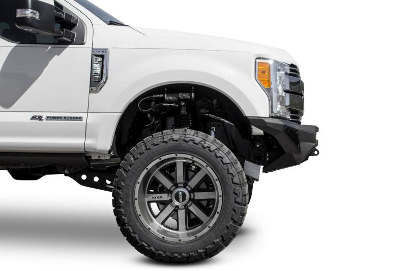 Stealth Fighter Front Bumper The Ford F-250/F-350 has never looked better with the Stealth Fighter front bumper. A radius plate steel design gives your Super Duty added front end protection without all the extra bulk. Matching the factory body lines, the Stealth Fighter front bumper is a tight fitting steel plate bumper that truly compliments Ford's OEM look. Our patented universal light mount system allows the use of up to a 40" radius LED bar or 10 cube lights in the center of the bumper. Mount any combination of brand, size, and style light to give your Super Duty the added lighting you need. Fully bolt-on means that no cutting or welding is required for installation. Reinforced D-ring and winch mounts provide your truck with added utility to pull through any tough situation.