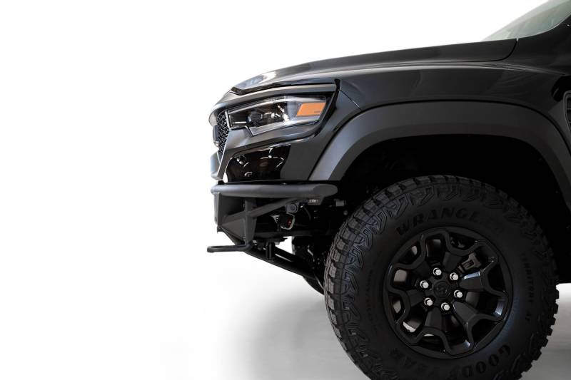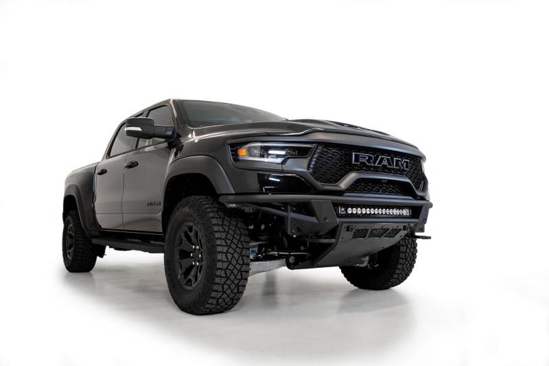ADD PRO Bolt-On Front Bumper ADD Offroad's Ram TRX PRO Bolt-On Front Bumper features a low profile and high clearance. The center of the bumper features inset mounting points for 8 cube lights or a 30-inch radius light bar. There is an optional light hoop able to hold four 6-inch round lights for maximum lighting on the trail.