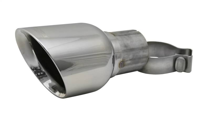 Exhaust Tip Kit; Universal; Single 4.5 in. Angle Cut; Round; No Resonator; 9.1 in. Overall Length; 2.75 in. Dia. Pipe; Slash Cut; Clamp Incl.; Polished;