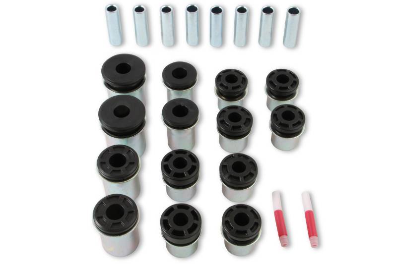 Delrin bushings are a hard-plastic material that doesn't deflect and are self-lubricated with PTFE for long-term maintenance-free use. The smooth operation of the control arms provides more consistent and predictable handling. Bushing kit includes Delrin bushings, inner & outer steel sleeves (fits REKUDO & factory stamped steel control arms) on 1970-1981 Chevrolet Camaro & Pontiac Firebird. Ideal for use in street performance, drag racing, track days, and autocross applications.